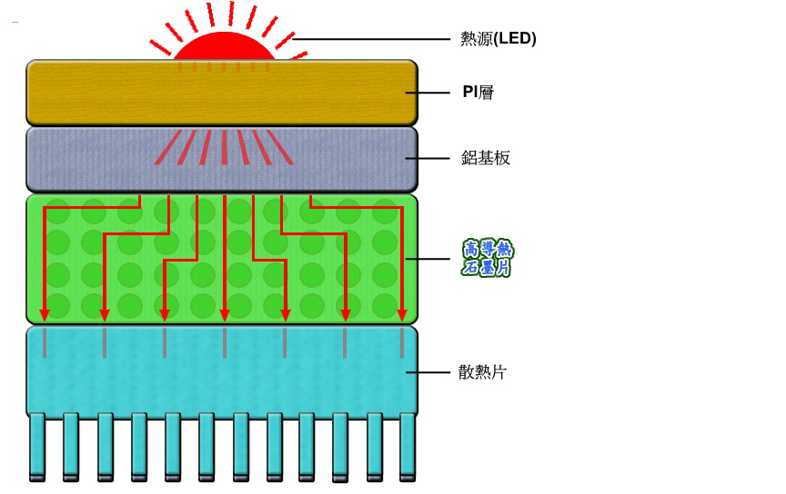 片于X-Y轴之导热速度不够快,以致仅有热源中心附近的鳍片能发挥散热功能。
